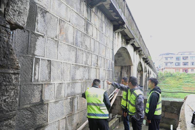 重点排查桥梁墩台、基础冲刷掏空、裂缝破损等问题,观测河堤稳固性和水流变化;同步检查桥面、伸缩缝、护栏、支座等附属设施,严格执行“一桥一档”,详细记录数据、精准评估风险、建立安全档案。对轻微病害立即处置,对重点隐患明确时限、跟踪验收。